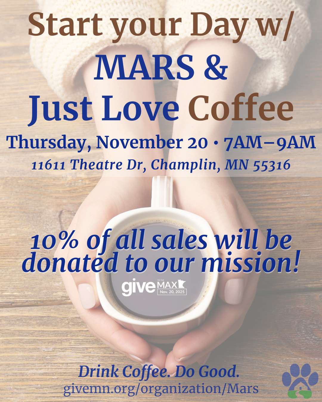 On Thursday, November 20th, join us for Give to the Max Day, Minnesota’s biggest day of giving! At Midwest Animal Rescue & Services (MARS), every gift makes rescue possible.